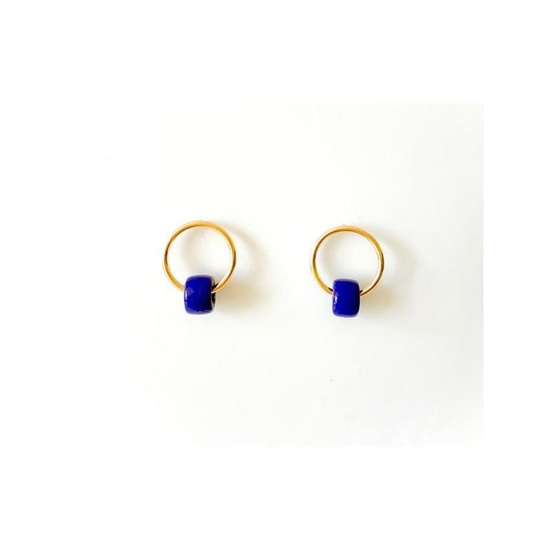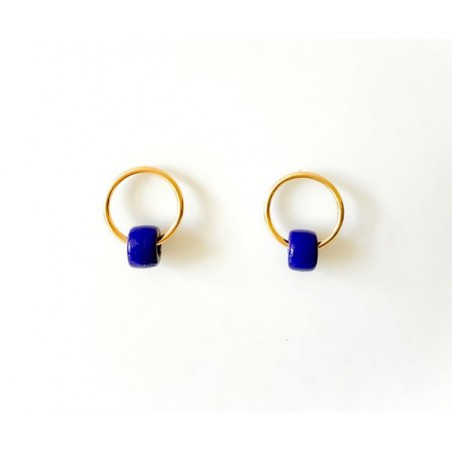 Des boucles d'oreilles discrètes et faciles à porter au quotidien. Avec leur design minimaliste, ces boucles d’oreilles jouent sur la simplicité d’un anneau doré et l’originalité d’une perle en verre colorée.