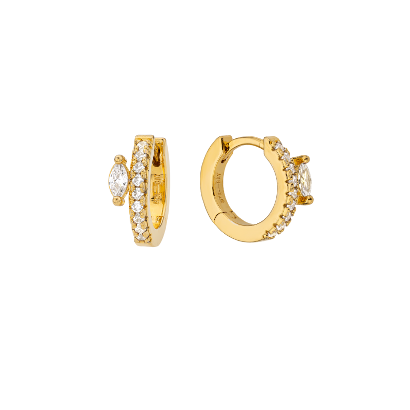 Les boucles d’oreilles PRECIOUS DELHI de MYA—BAY, dorées à l’or fin recyclé 24 carats, revisitent notre modèle iconique DELHI avec une touche de raffinement en plus.