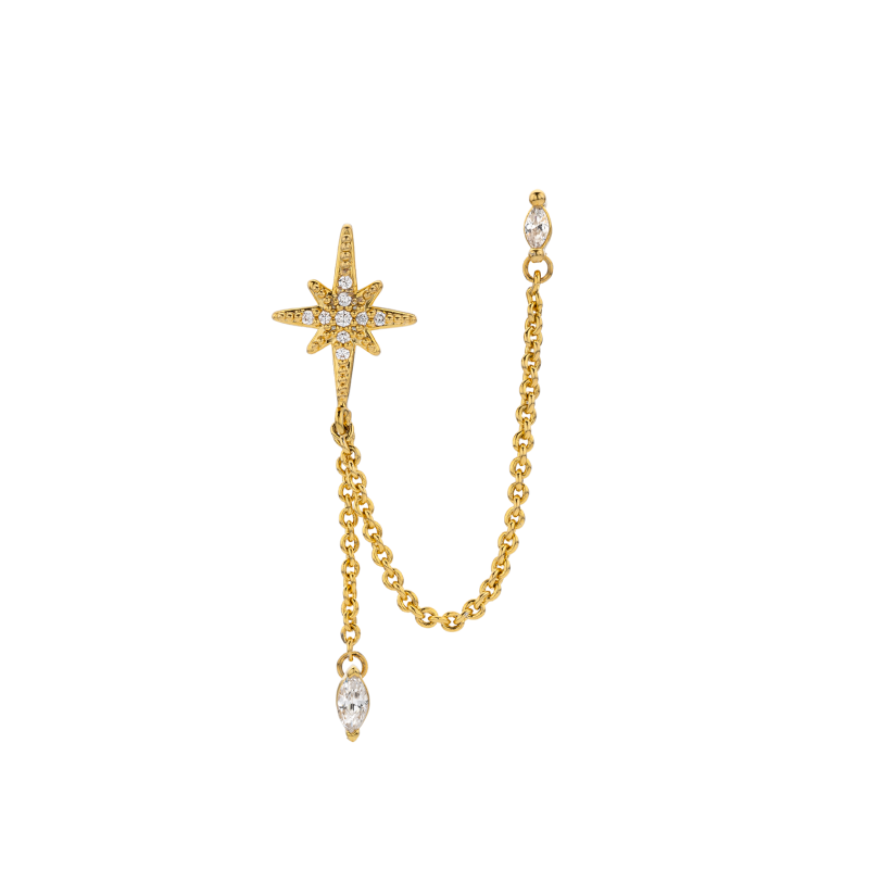 La boucle d’oreille DIWALI BOLLYWOOD de MYA—BAY, dorée à l’or fin recyclé 24 carats, est notre étoile iconique revisitée en version statement.