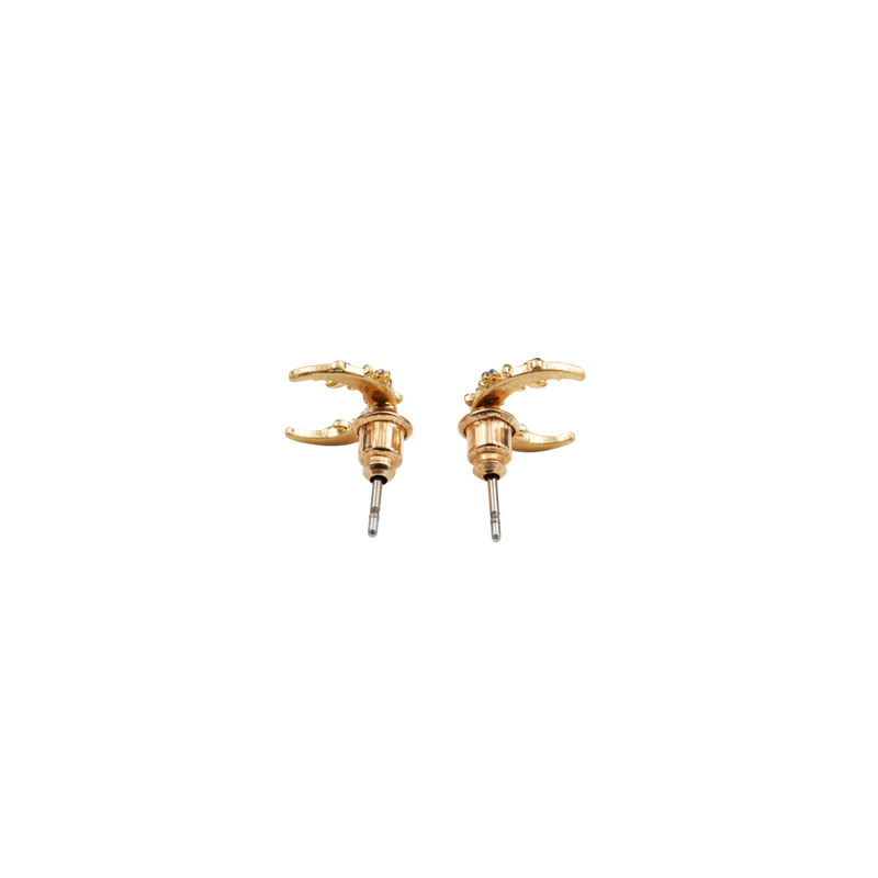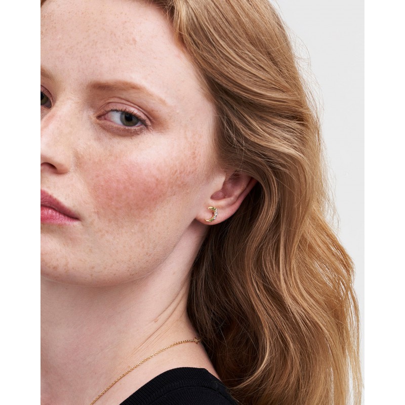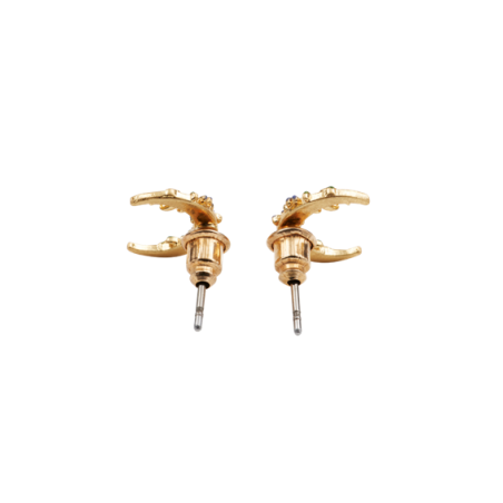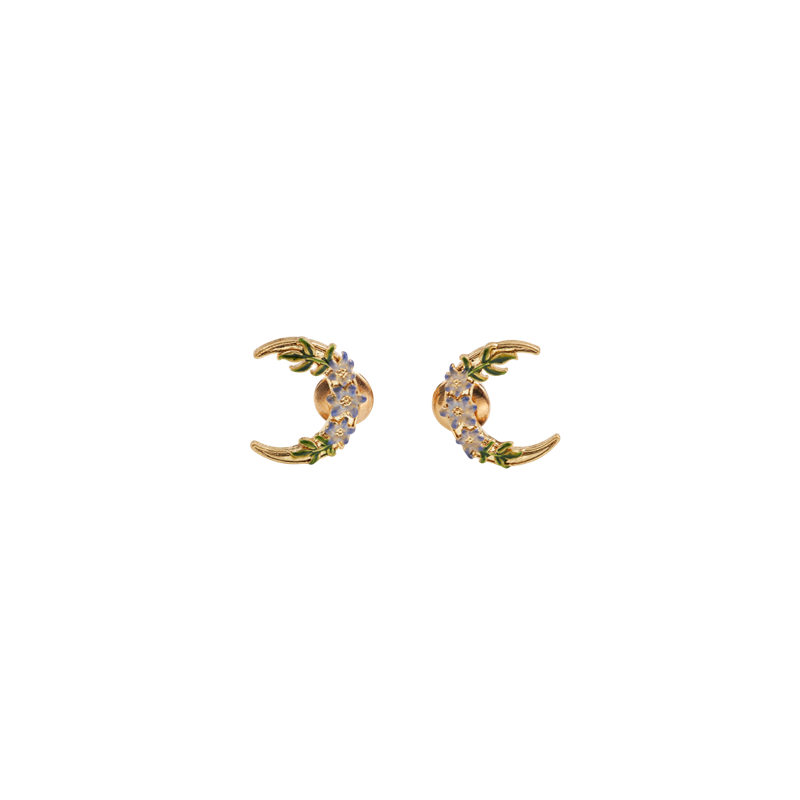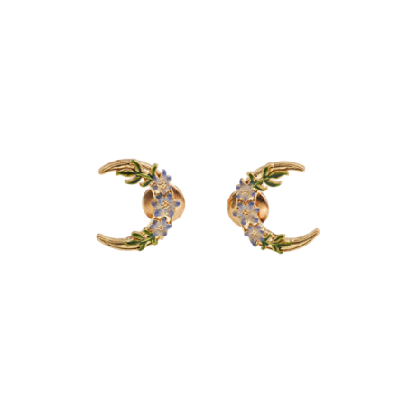C'est à la nuit tombée que la morelle révèle toute sa beauté, reflétée dans ces délicates boucles d'oreilles. Soigneusement peintes à la main sur l'émail, les fleurs se posent avec élégance sur de minuscules croissants de lune en laiton plaqué or 22 carats. Magiques et mystiques, si vous aimez les bijoux vintage, vous les porterez de jour comme de nuit.