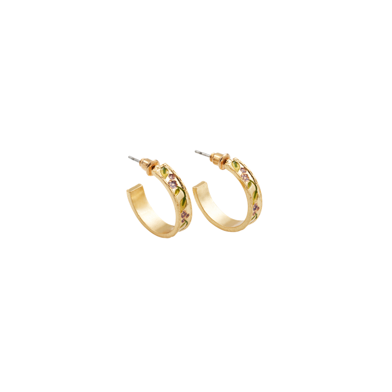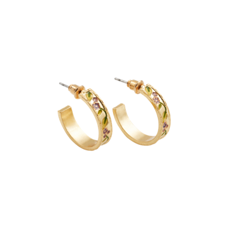 Inspirées des ronces au crépuscule, lorsque leurs branches et leurs fruits scintillent dans la lumière tamisée, ces créoles polyvalentes rappellent le captivant changement de saison. Réalisées en laiton plaqué or 22 carats, ornées de mûres en émail peintes à la main délicatement enroulées autour de chaque créole, elles vous transporteront sur les sentiers bordés de bruyère de vos promenades en forêt préférées.