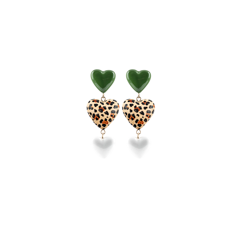 BOUCLES D'OREILLES 3 COEURS LEOPARD