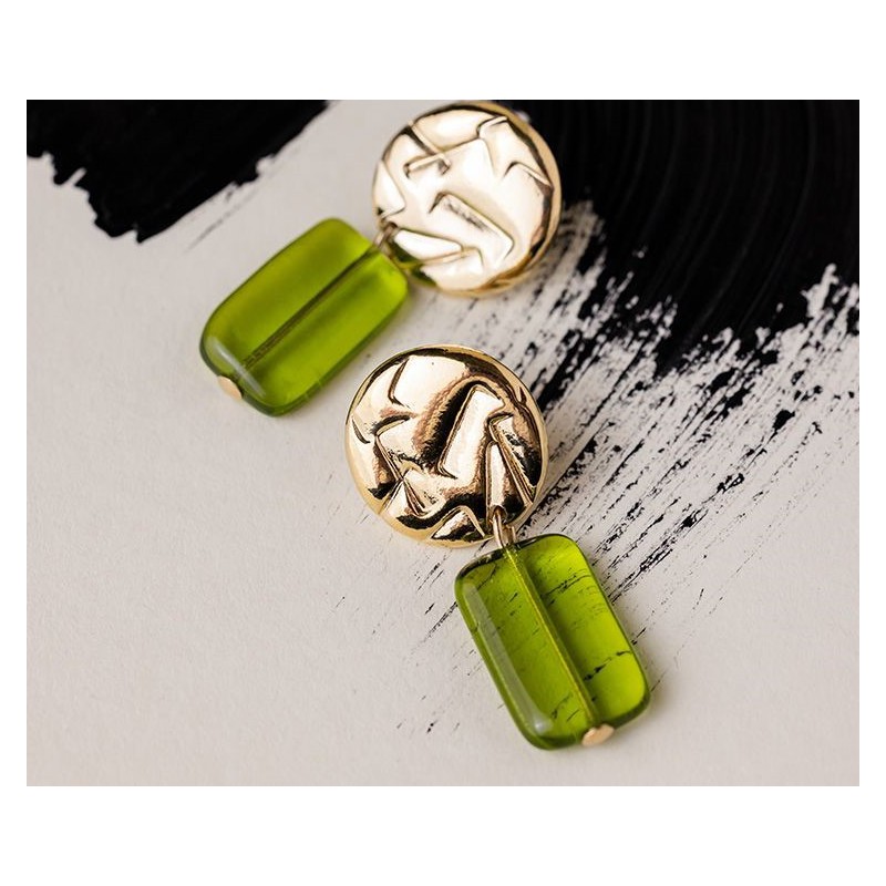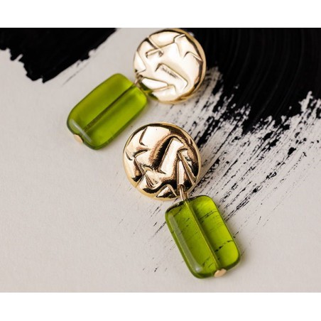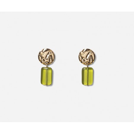 Boucles d'oreilles en verre colorées Chic Alors composées d'une puce ronde dorée et d'une perle en verre transparente de couleur verte ou orange