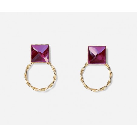 Ces boucles sont l'alliance réussie d'un strass carré biseauté et d'un anneau tressé en métal doré. Elles possèdent un chic époustouflant. Les différents coloris du strass permettent d'assortir les boucles à vos tenues. Le look élégant de ce bijou en fait une parure de luxe très féminine et un cadeau d'anniversaire très apprécié.