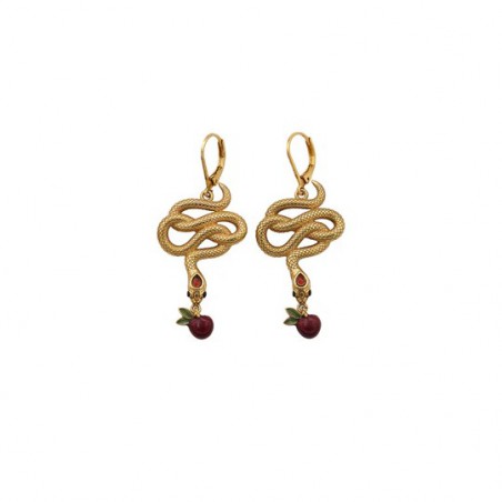 Boucles d’oreilles en laiton bain d’or, 1 micron d'or 999/1000, pierres semi précieuses et émail rouge et vert transparent.