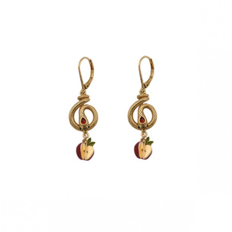Boucles d’oreilles en laiton bain d’or, 1 micron d'or 999/1000, pierre semi précieuse et émail rouge et vert transparent.