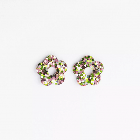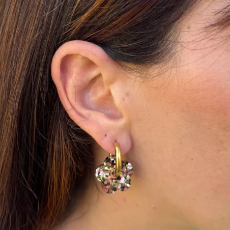 BOUCLES D'OREILLES CREOLES FLEUR MIX CUIVRE OLIVE