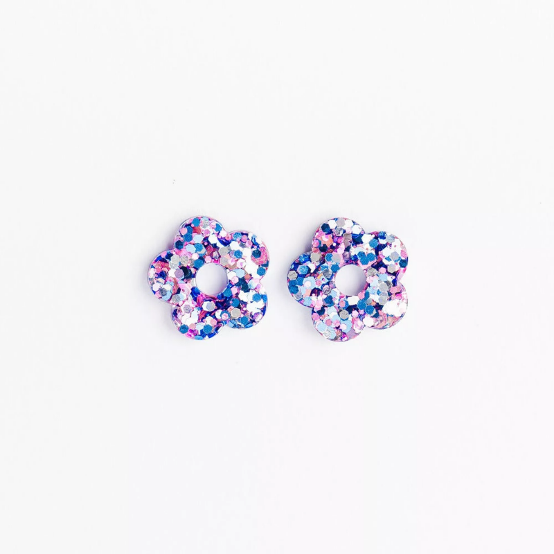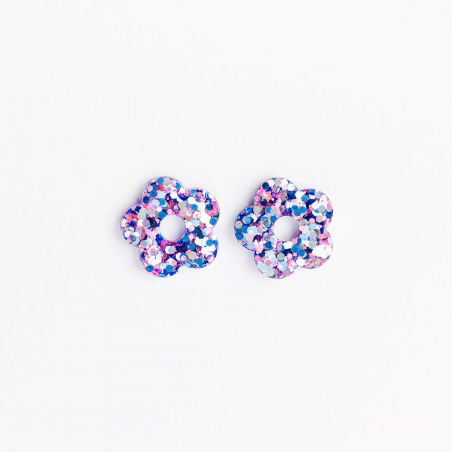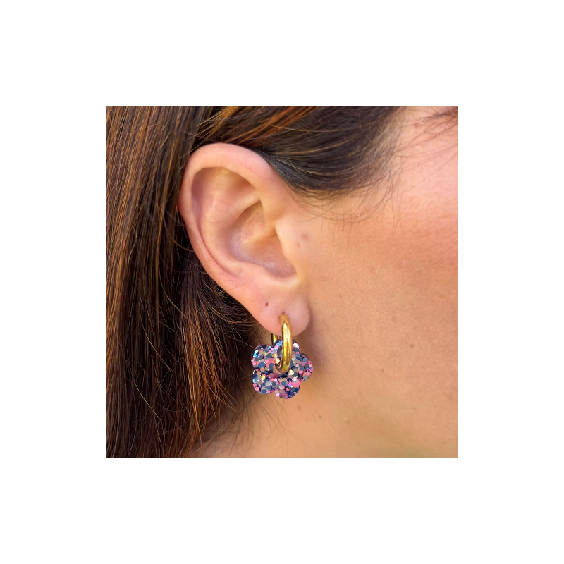 BOUCLES D'OREILLES CREOLES FLEUR MIX BLEU ROSE