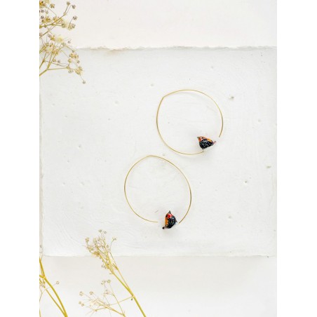 Boucles d'oreilles en porcelaine et laiton doré à l'or fin. Métal certifié sans nickel et sans risque d’allergie provenant d'Italie.