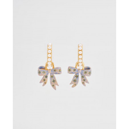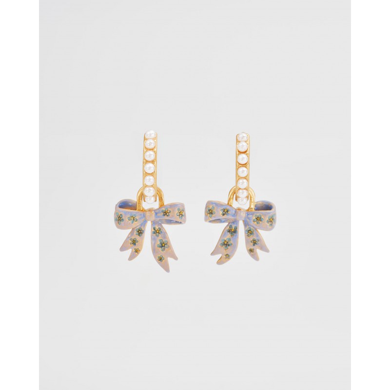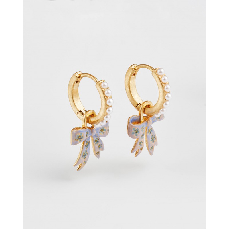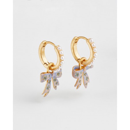 Détail : Breloque nœud amovible avec perle d'imitation et finition émaillée délicate