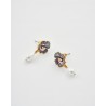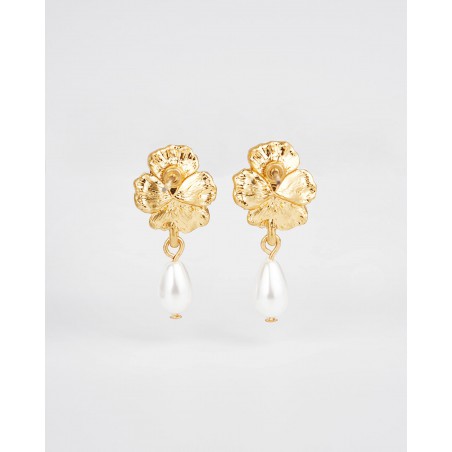 Laiton plaqué or 22 carats vieilli, alliage de zinc, émail, perle d'imitation ; Tiges : Acier inoxydable