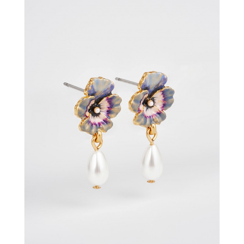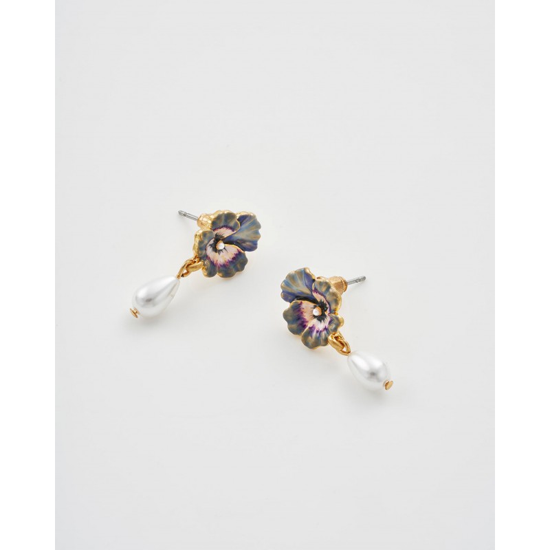 Les boucles d'oreilles Pensée et Perle capturent la délicate élégance de la pensée, peinte à la main en émail lilas et violet avec de subtils accents dorés. Sous chaque fleur se trouve une perle d'imitation lisse, ajoutant une touche raffinée de mouvement et de luminosité. Symbolisant l'attention et l'affection, ces boucles d'oreilles apportent une grâce intemporelle à toutes vos tenues, parfaites de jour comme de soir.