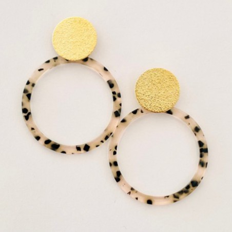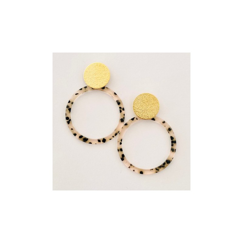 Élégantes boucles d’oreilles en or fin et acétate, mêlant brillance intemporelle et design contemporain. Leur finition dorée sublime chaque tenue avec une touche de sophistication discrète. Résistantes et raffinées, elles incarnent le luxe au quotidien. Un indispensable à offrir ou à s’offrir.