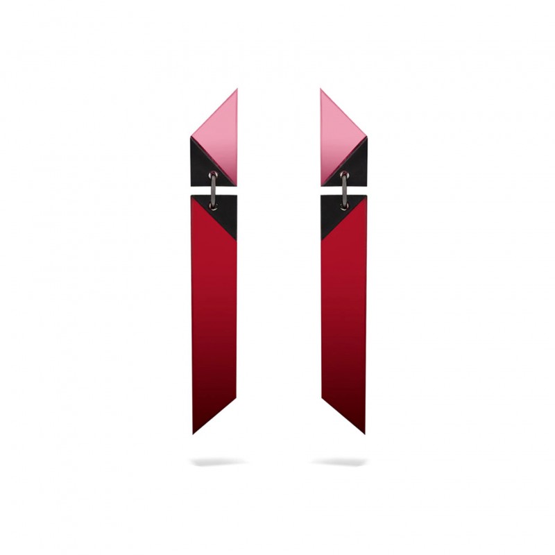 Les boucles d'oreilles Oblik, graphiques et minimalistes, sont déclinées en deux tailles et 3 couleurs.