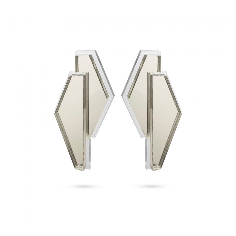 Chaque boucle associe la transparence lumineuse du plexiglass à l'éclat précieux d'un miroir doré ou argenté, créant un jeu subtil entre légèreté et sophistication.