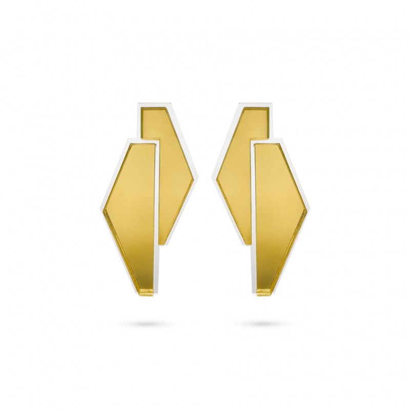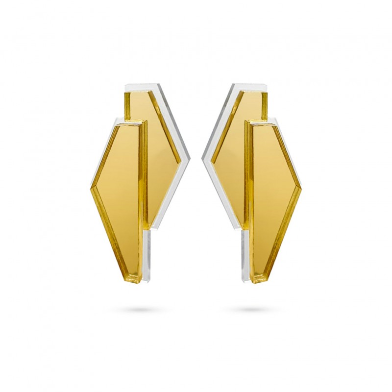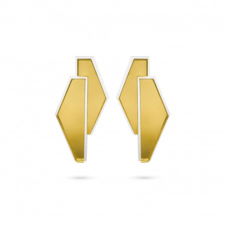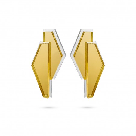Chaque boucle associe la transparence lumineuse du plexiglass à l'éclat précieux d'un miroir doré ou argenté, créant un jeu subtil entre légèreté et sophistication.