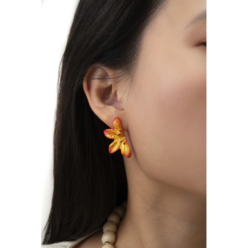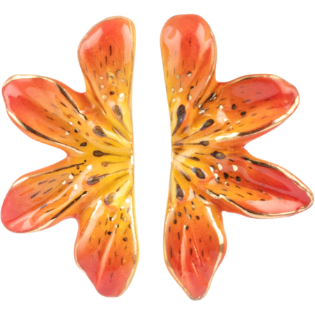 Boucles d'oreilles en porcelaine et laiton doré à l’or fin.