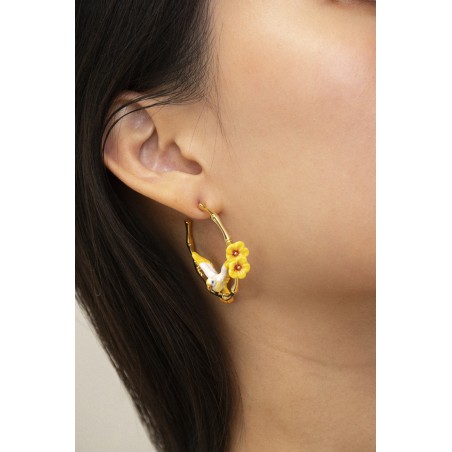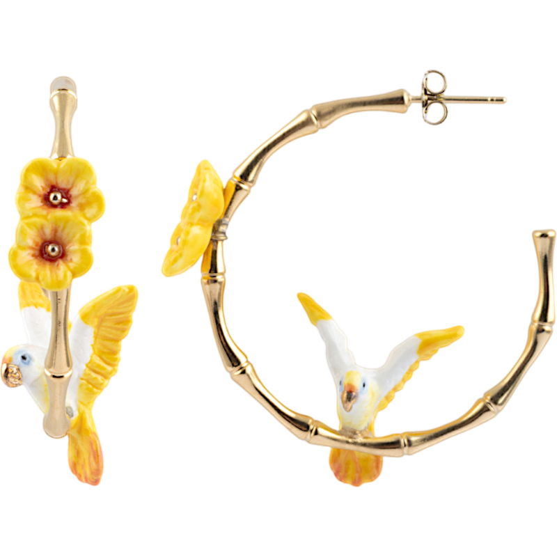 BOULES D'OREILLES CREOLES PERROQUET & FLEURS DE BAMBOU