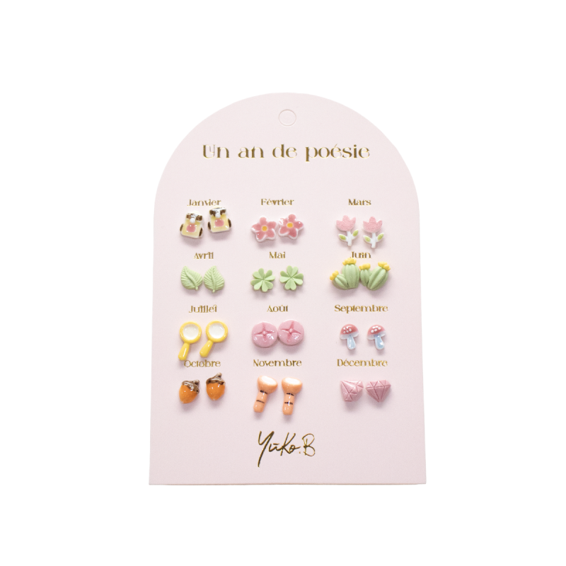 -12 paires de boucles d’oreilles, une pour chaque mois de l’année