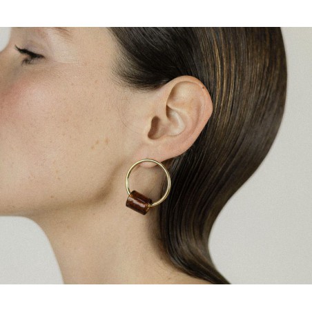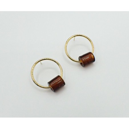Boucles d'oreilles fantaisie Chic Alors composées d'un anneau rond en métal doré et d'une perle ronde en verre nacré de couleur crème façon perles naturelles.