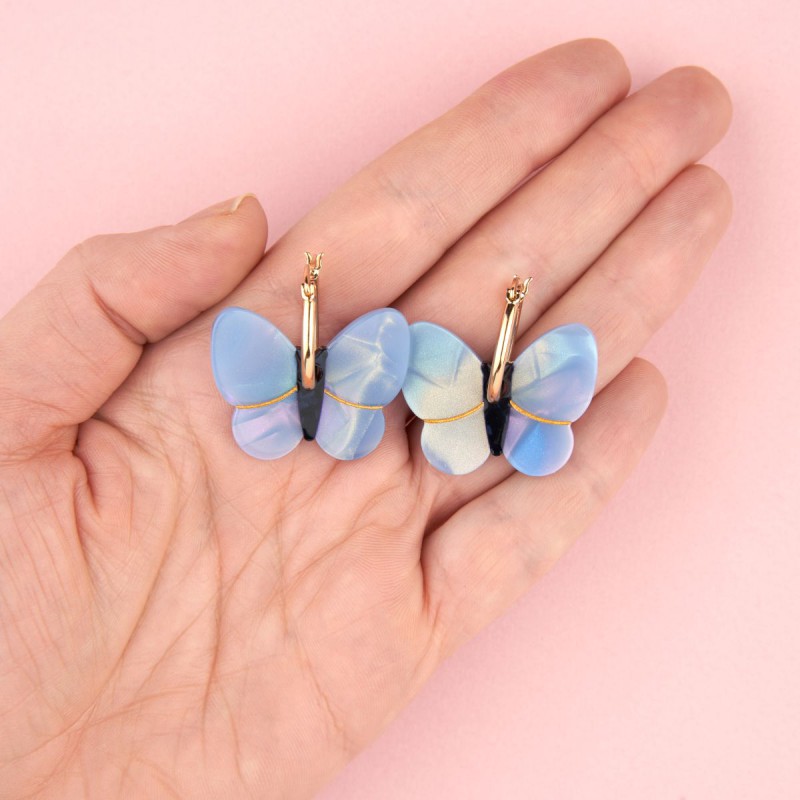 Rien ne célèbre le printemps comme une paire de boucles d’oreilles papillon ! Surtout lorsqu’il s’agit de ces somptueux petits chéris aux ailes nacrées pleines de reflets. Un bijou qu’on porte avec une coiffure haute pour les laisser scintiller à la lumière.
