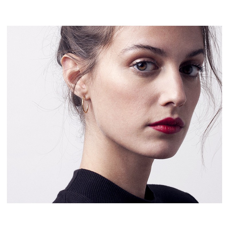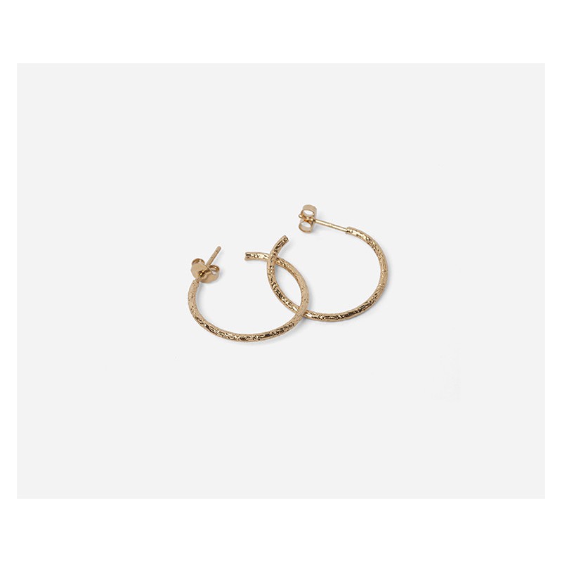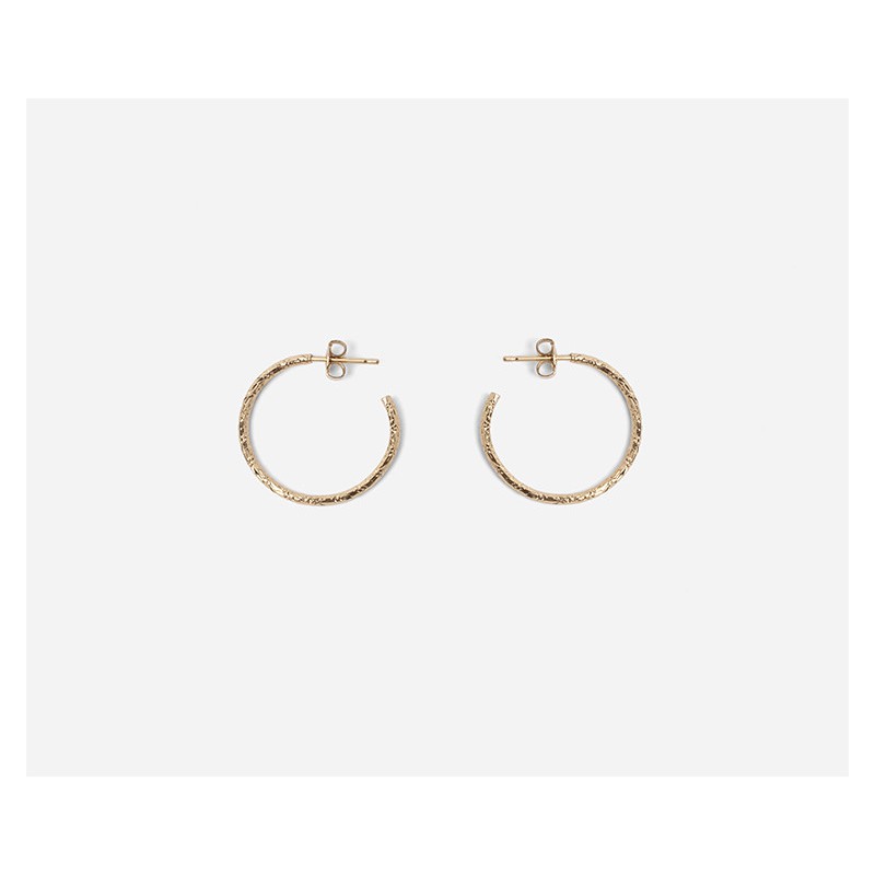Petites boucles d'oreilles créoles en métal doré finement gravé