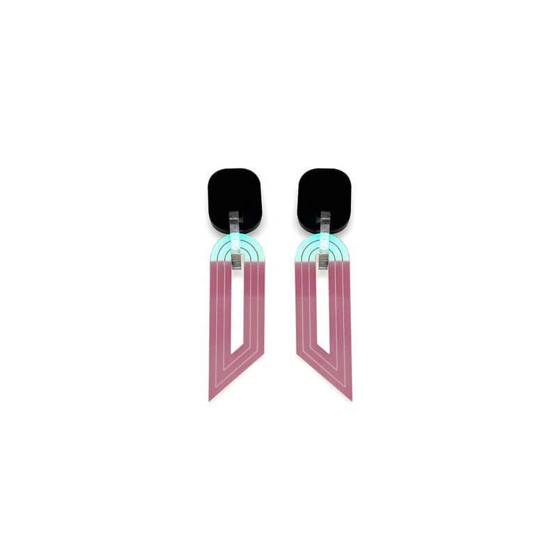 Ces pièces de créateurs en plexiglass colorés sont associées à d'autres éléments miroirs pour un côté chic et branché.
