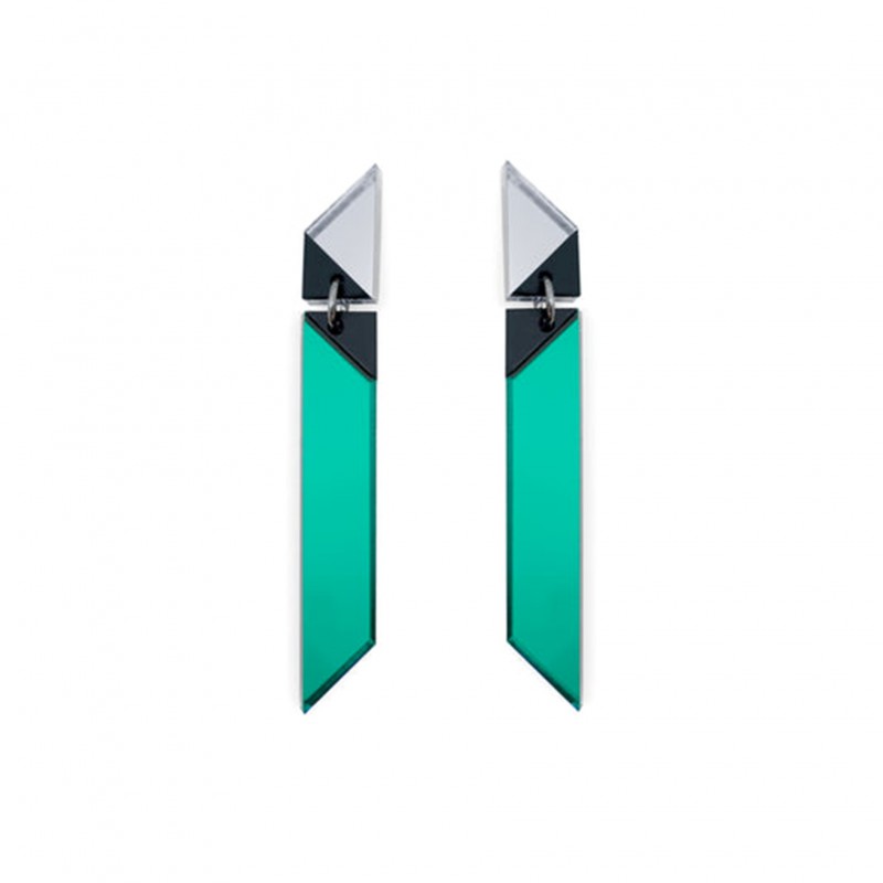 Les boucles d'oreilles Oblik, graphiques et minimalistes, sont déclinées en deux tailles et 3 couleurs.