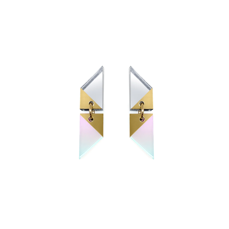 Les boucles d'oreilles Oblik, graphiques et minimalistes, sont déclinées en deux tailles et 3 couleurs.