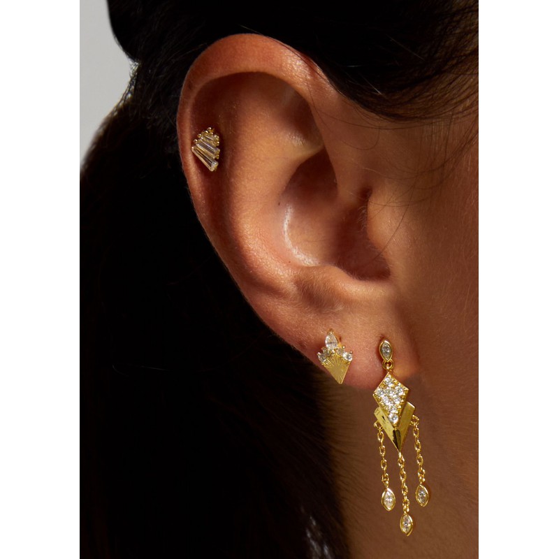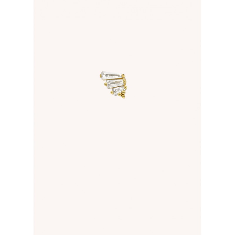 Découvrez l'élégance audacieuse avec le piercing SCALE BAGUETTE. Trois zircons scintillants sont soigneusement incrustés le long de cette pièce. Inspiré par la géométrie subtile des baguettes, ce piercing MYA BAY apporte une touche de glamour moderne à votre style.