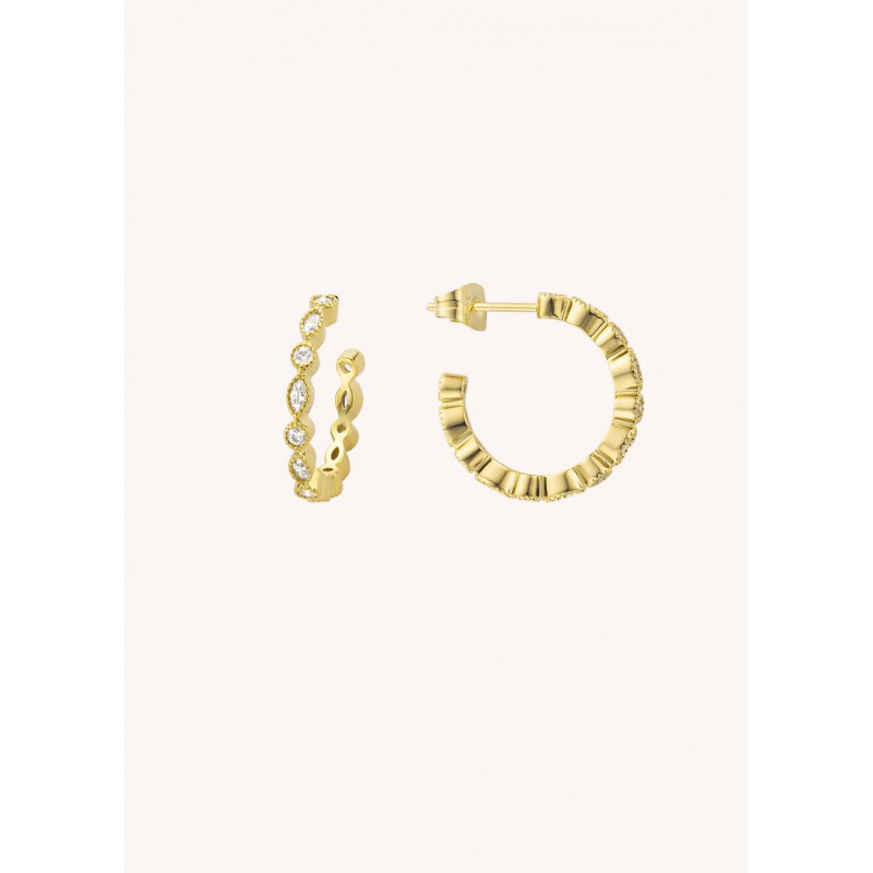 Plongez dans l'élégance intemporelle avec les boucles d'oreilles LOVELY INFINITY. Inspirées par le lien infini entre moments précieux, elles captivent avec leur design délicat et moderne orné de pierres fines. Grandes sœurs des boucles INFINITY, ces boucles d'oreilles MYA BAY dorées à l'or fin 24 carats apportent une touche de grâce subtile.