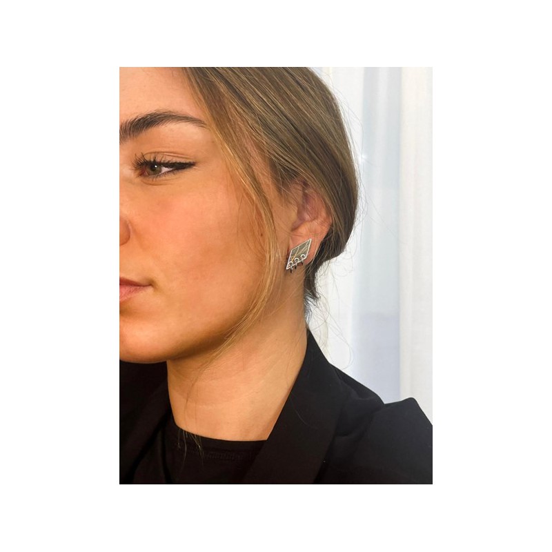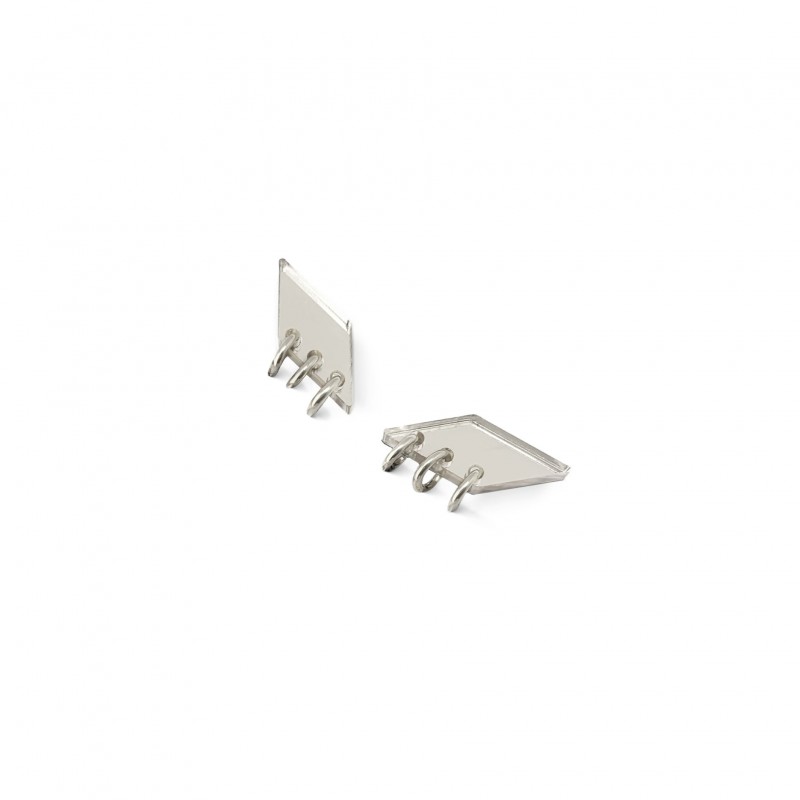 Boucles en plexiglass miroir or ou argent, ornées d'anneaux de 8mm en argent doré à l'or fin ou rhodiés. Clous en argent 925.