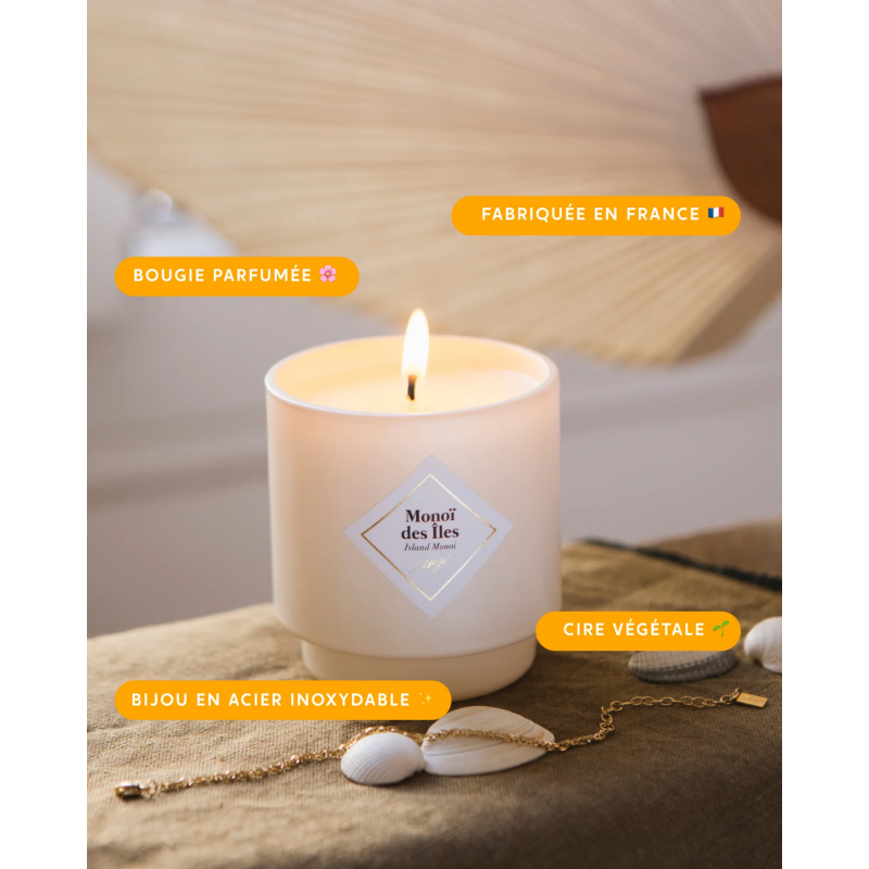 Bougie parfumée avec bracelet surprise à l’intérieur.