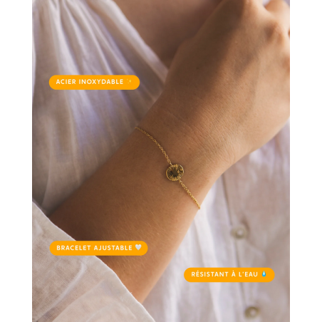 Le bijou est en acier inoxydable donc résistant à la corrosion, à l'eau et hypoallergénique. Le plaquage IP (Revêtement IP Or 18K) est plus résistant à la corrosion qu'un placage or classique, ce qui procure aux bijoux une durabilité non négligeable.