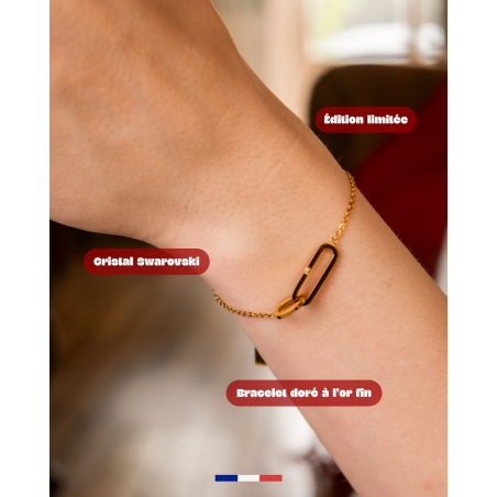Bracelet en acier inoxydable doré à l’or fin 18 carats et cristal Swarovski
