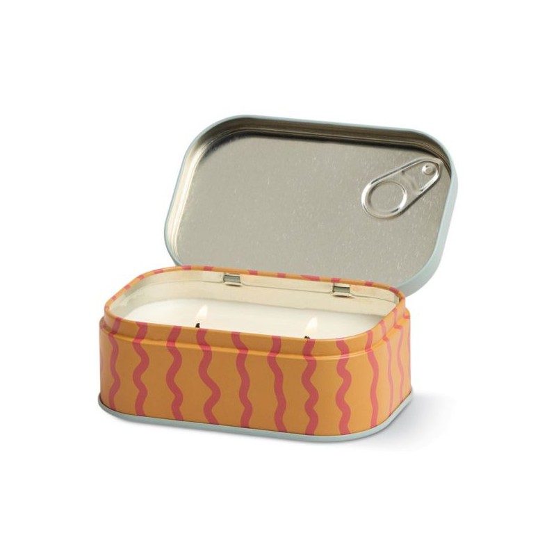 Avec une fausse languette pour plus de caractère inspirée des boîtes de sardines, ces bougies en étain avec des illustrations à la main offrent une lueur chaleureuse et un parfum réconfortant.