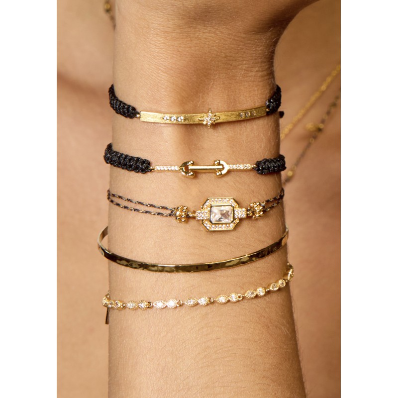 Ajustable grâce à son nœud coulissant, il s’adapte à tous les poignets. À porter seul ou en accumulation avec vos autres bracelets MYA—BAY préférés.