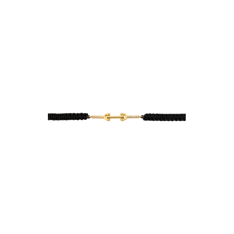 Le bracelet WEST LINK de MYA—BAY, doré à l’or fin recyclé 24 carats et monté sur un cordon noir ajustable, s’inscrit dans la lignée du DIWALI LINK, avec une touche graphique bien à lui.