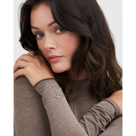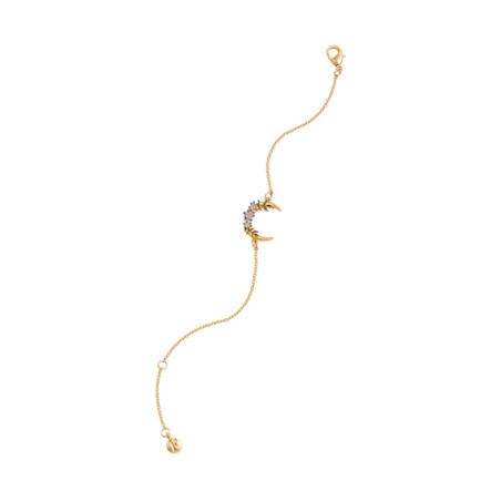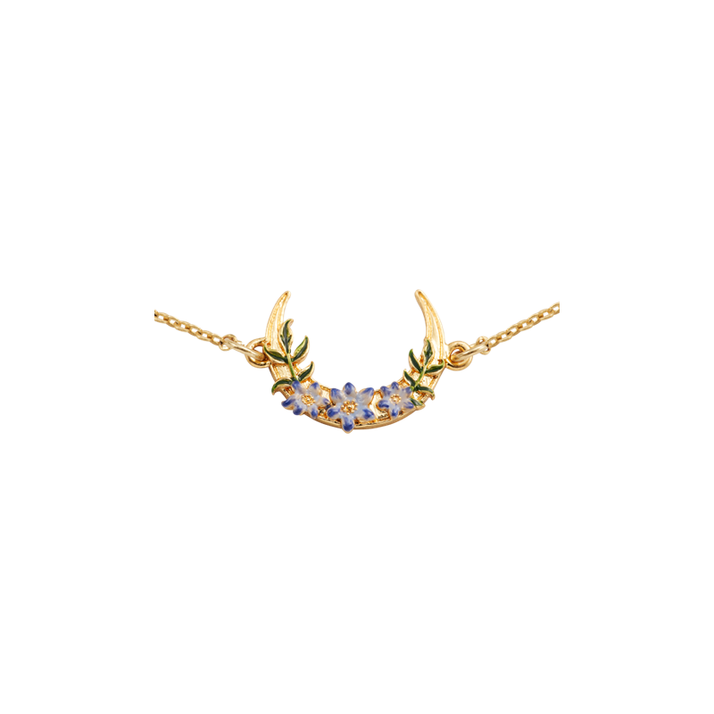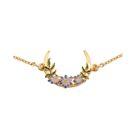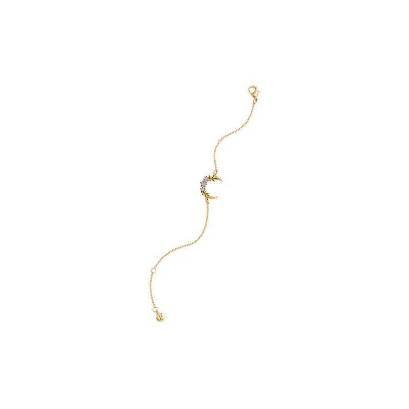 C'est à la nuit tombée que la morelle révèle toute sa beauté, immortalisée par le bracelet Lune de la morelle. Une chaîne délicate ornée d'un croissant de lune et ornée de fleurs et de minuscules feuilles peintes à la main, ce modèle unique et original allie âme et style. Fabriqué en laiton plaqué or 22 carats, sa finition vintage est parfaite pour l'automne/hiver.