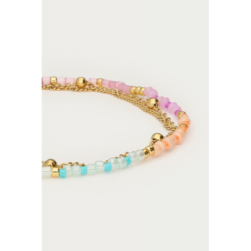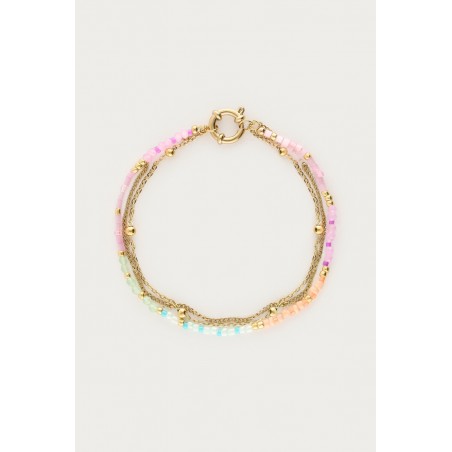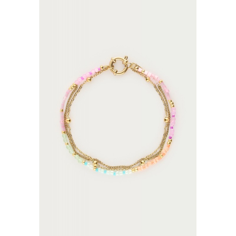 BRACELET BOTANICAL TRIPLE AVEC PERLES FANTAISIE MULTICOLORES