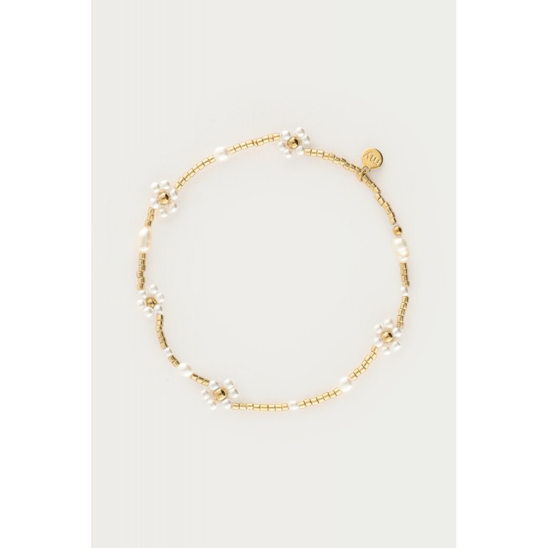 BRACELET BOTANICAL EXTENSIBLE AVEC FLEURS EN PERLES D’EAU DOUCE