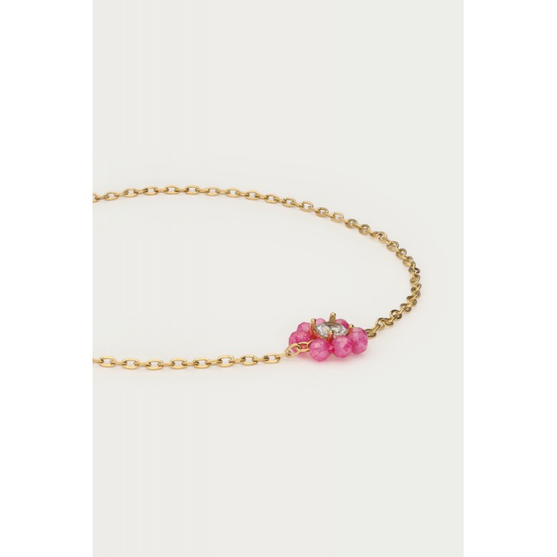 BRACELET BOTANICAL AVEC PETITE FLEUR EN STRASS ROSE