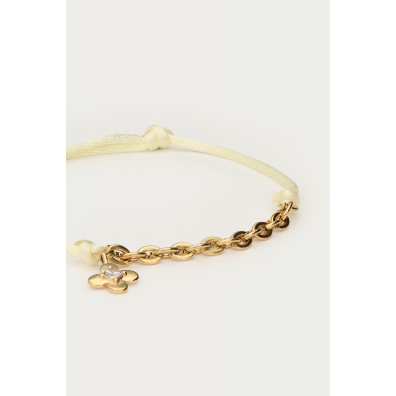 Des couleurs douces et fraîches, des détails emblématiques de My Jewellery et des accents délicats font de ce bijou le choix parfait pour un nouveau départ. Ce bracelet en corde jaune avec fleur de My Jewellery apporte un rayon de soleil à ton look. Son design subtil en acier inoxydable premium est 100 % résistant à l’eau et aux rayures, conçu pour t’accompagner chaque jour. Porte-le seul ou offre-le en cadeau. Petit détail, grande signification !