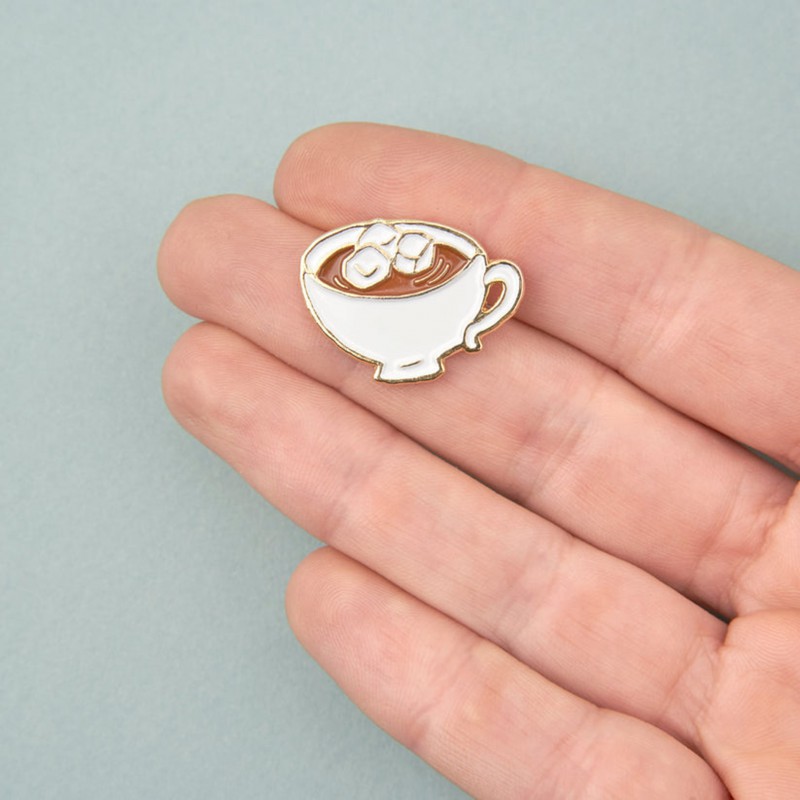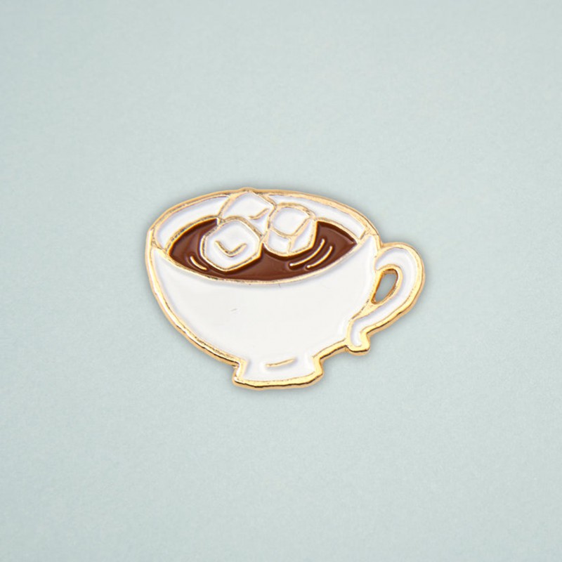 Hop, quand les températures baissent, on en profite pour se faire de bons chocolats chauds épais et savoureux, option mini marshmallows sur le dessus. En attendant d’être à la maison pour s’en faire un, on porte ce joli pin’s gourmand qui scintille à tout va sur nos cols de veste.