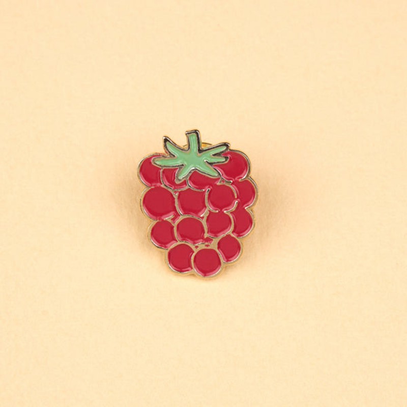 Pour accompagner les chaussettes et la barrette fruits rouges, on épingle ce joli pin’s à notre col de veste. On craque pour sa belle couleur framboise écrasée et ses contours dorés qui scintillent au soleil. Miam, ça nous donnerait presque faim dites donc !