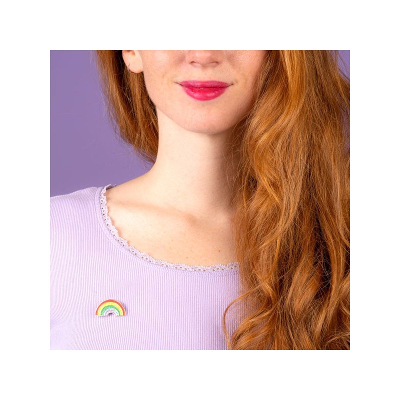 Un joli petit pin’s arc-en-ciel à paillettes qui s’accroche gaiement à nos vestes en jean pour briller à la marche des fiertés ! On adore cet accessoire rigolo tout en couleur qui célèbre l’amour sous toutes ses formes.