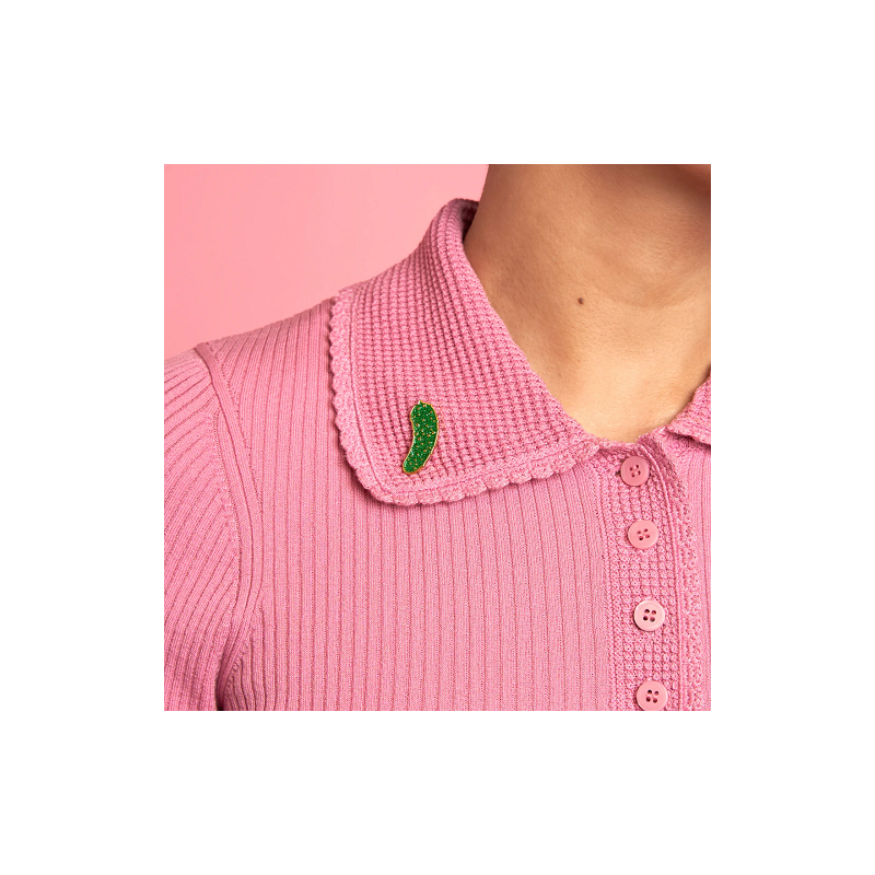 Le pin’s cornichon fait son come-back en bombe bébé, toujours aussi scintillant de mille paillettes. Le détail hyper original qui manquait à nos tenues.
