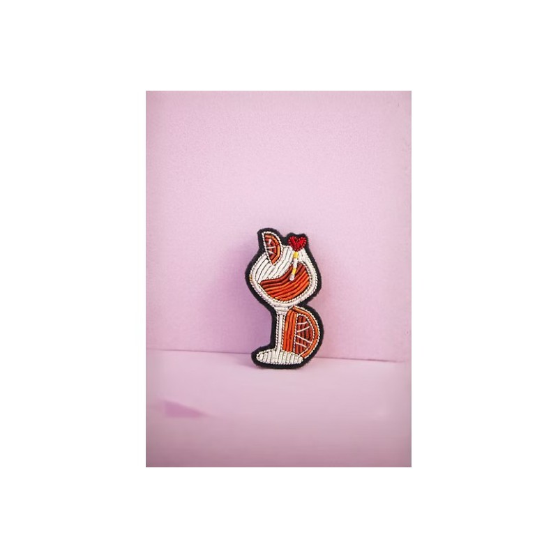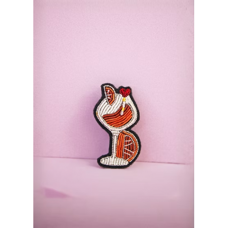 Apéro o’clock ? Toujours. Le Spritz c’est LA broche de toutes les copines qui kiffent siroter en terrasse. Avec sa tranche d’orange et sa paille brodées à la main, elle met tout le monde d’accord.