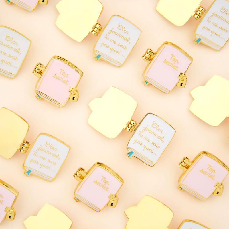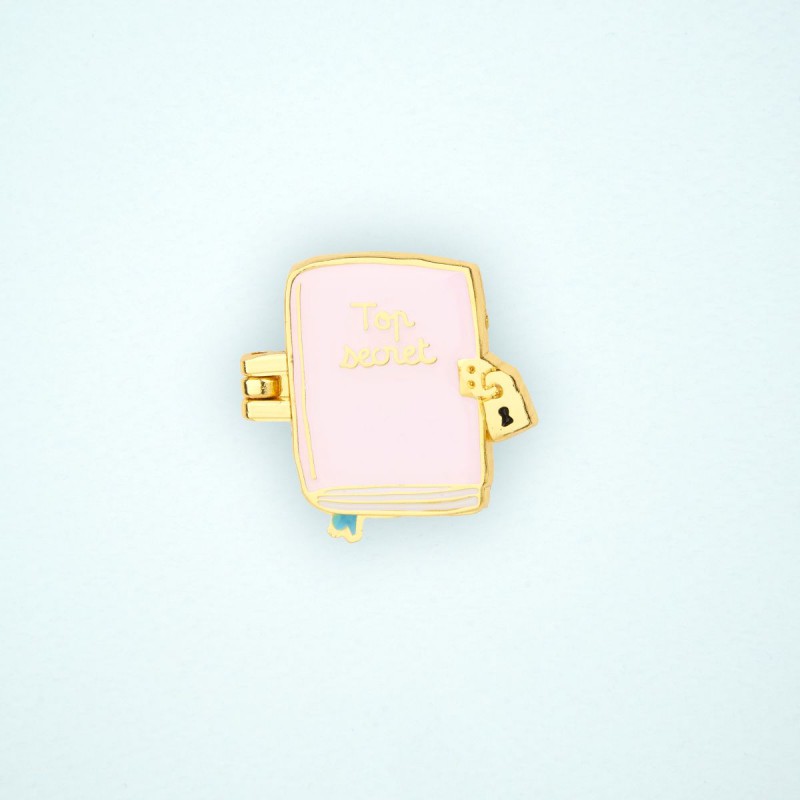La gossip girl originelle : notre journal intime pardi ! Il recueille sans juger nos plus folles émotions de jeune ado. Gamelle devant tout le monde à la récré, soirée pyj avec notre bff, premiers émois… En souvenir du bon vieux temps, on épingle ce pin’s à notre veste, qui s’ouvre comme un vrai carnet pour révéler tous ses secrets.