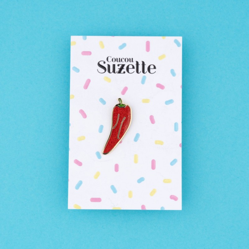 Ce mignon pin’s Piment rouge pailleté ne risque certes pas de piquer la gorge, mais il réchauffera à coup sûr toutes les tenues les plus basiques ! À épingler sur son col de chemise ou sur la poche de sa veste en jean pour un look muy caliente.